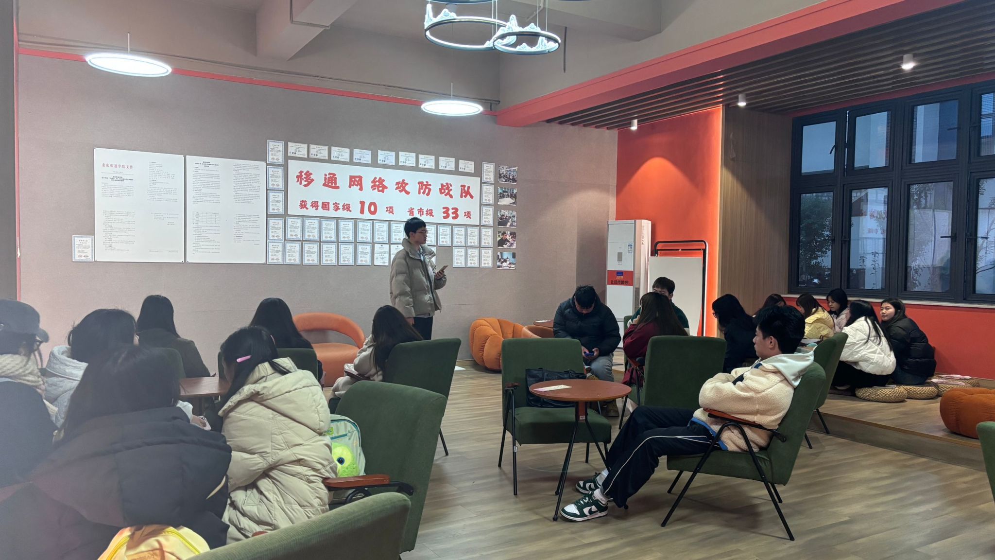 随后,交流会秒变“寒假规划沙龙”。郑老师与同学们围坐一圈,仿佛老友相聚,大家纷纷打开了话匣子,分享起自己的寒假小算盘:有的打算在健身房挥汗如雨,有的想要沉浸在书海中充电,还有的计划着与家人温馨团聚,或是投身于社会实践增长见识。同时,大家也满怀期待地规划了下学期的学习蓝图,从精进专业技能到参与学术竞赛,再到拓宽交友圈,每个人的心中都种下了一颗颗希望的种子。